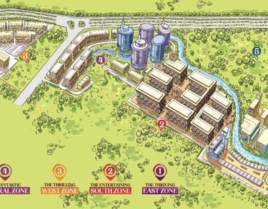 Beyond commerce, World Street delivers a complete lifestyle experience. With high-end retail outlets, vibrant dining options, entertainment zones, open plazas, green spaces, and contemporary architecture, it creates an engaging destination for families, professionals, and visitors alike. Spread across five distinct zones—Central, North, South, East, and West—the development blends high-rise and low-rise structures, double-height SCOs, open-air cafés, ample parking, and expansive walkways.